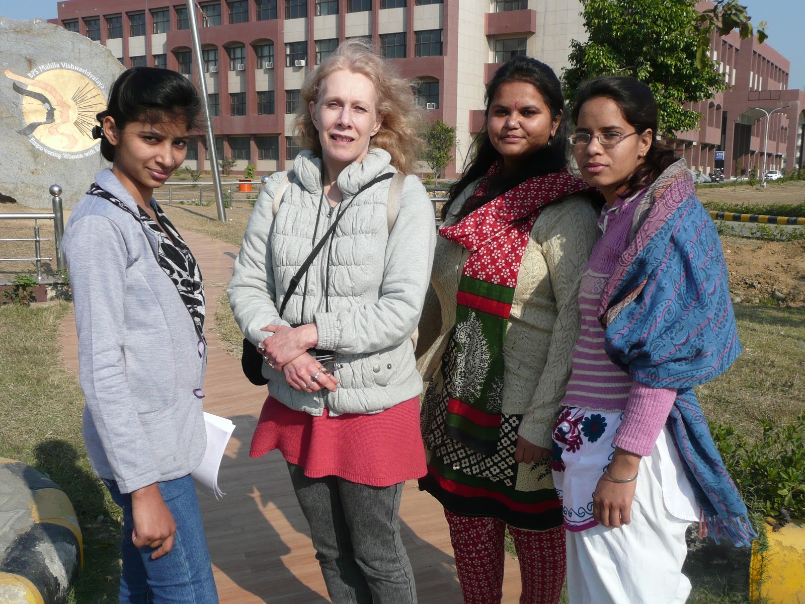 On Friday morning, we drove out of the cramped, noisy, and polluted monstrosity that is Delhi past fields of sugar cane, lemon-yellow mustard flowers, sturdy black bullocks and thin white cows to the sprawling campus of BPS Women University.